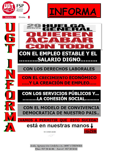 Con los recortes y la privatización de los servicios públicos y el deterioro de las condiciones laborales (y los que están por venir) de funcionarios, interinos y personal laboral de la administración pública tenemos motivos más que suficientes para secundar la huelga general, además de por solidaridad con el resto de trabajadores.