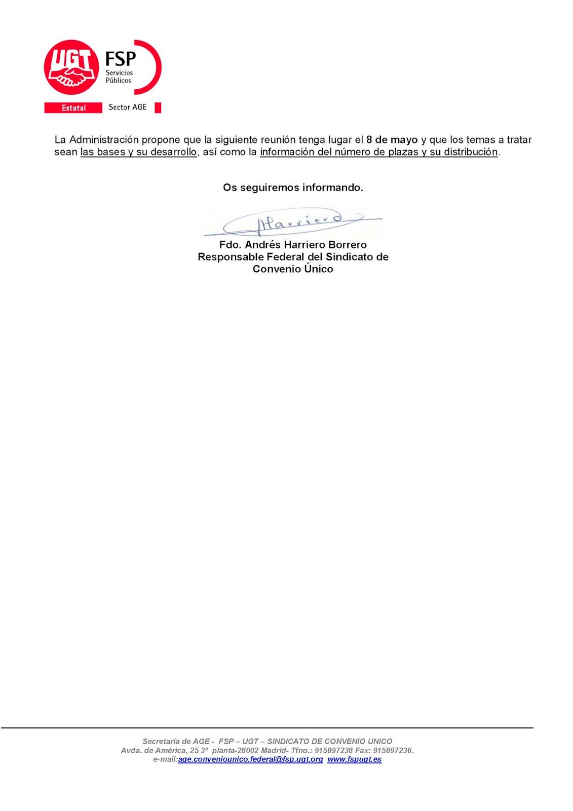 1. ME ALEGRO QUE UGT VUELVA A DARNOS INFORMACIONES DE ESTE TIPO DE REUNIONES Y ADEMAS EN TAN CORTO PLAZO DE TIEMPO TRANSCURRIDO DE DICHA REUNION.TAMBIEN ANIMARLOS A QUE SIGUAN POR ESE CAMINO CONSTRUCTIVO.