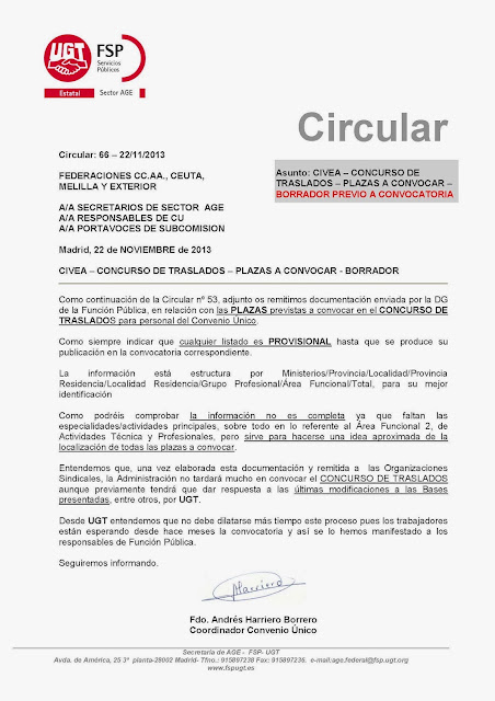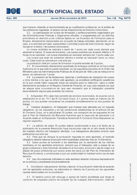 NOVIEMBRE DE 2013, POR LA QUE SE CONVOCA CONCURSO DE TRASLADOS PARA LA