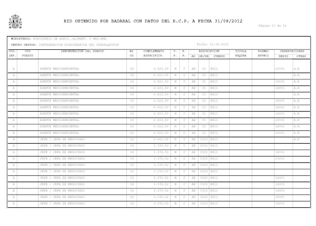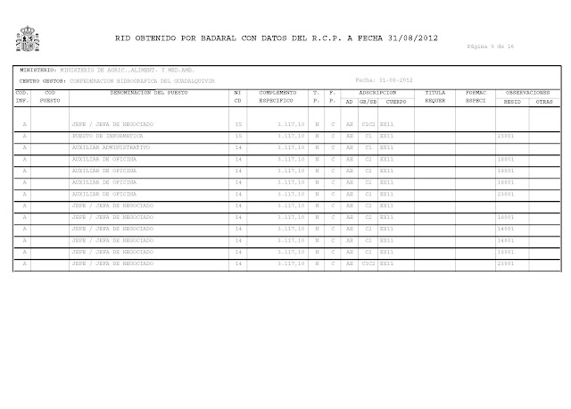 Como continuación a la reunión del grupo de trabajo de la Mesa Delegada de la MGNAGE que tuvo lugar en Sevilla del lunes 17 de septiembre, aquí está el RID de la RPT de personal laboral de la Confederación Hidrográfica del Guadalquivir.